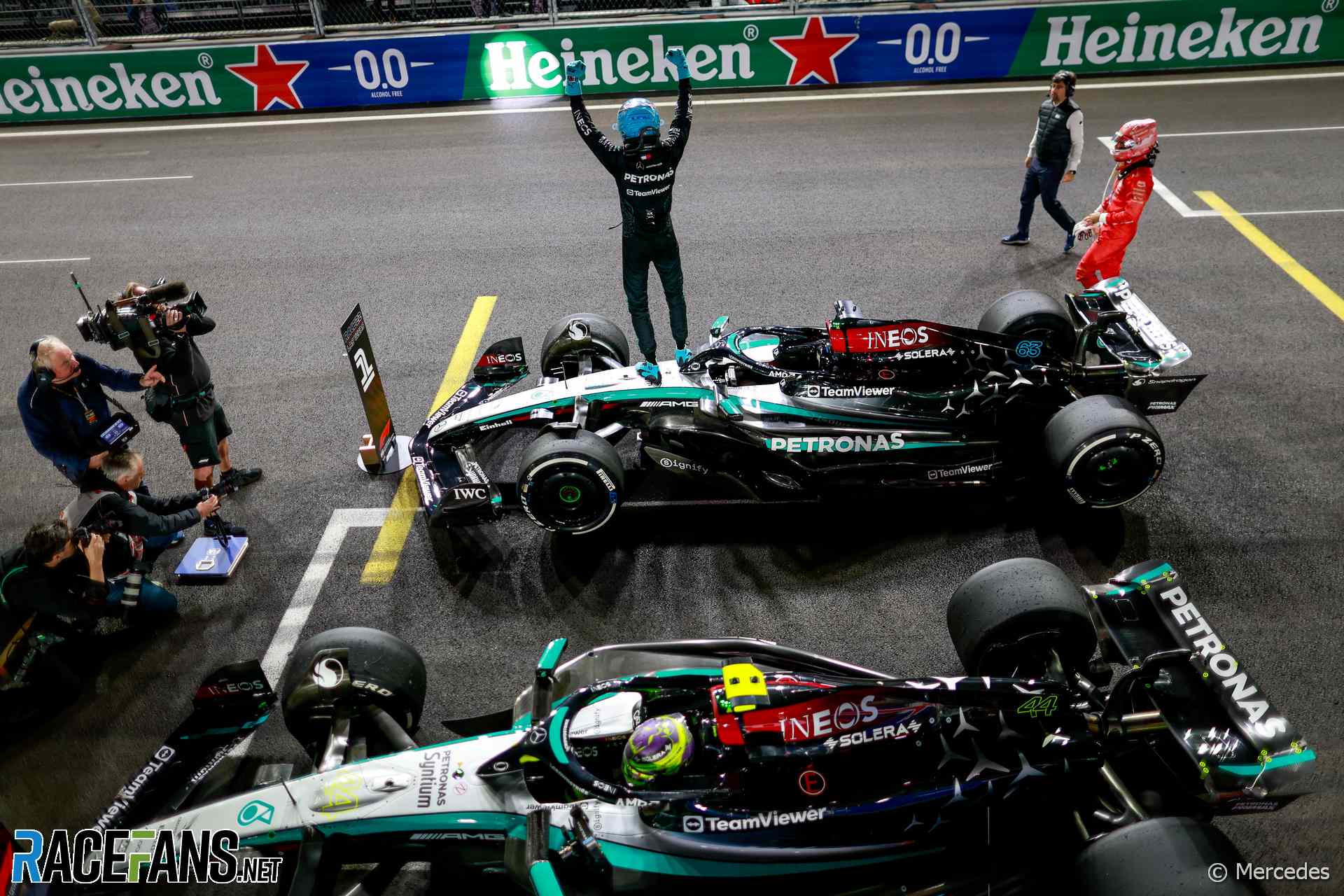 in Racing Russell leads Mercedes one-two as Verstappen seals the title in Las Vegas by dan November 27, 2024, 3:03 am George Russell led home Mercedes team mate Lewis Hamilton to win the Las Vegas Grand Prix as Max Verstappen clinched the 2024 world title. Source More